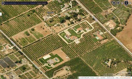 As crop production profits declined and land values increased, Riverside voters enacted Prop R in 1979 to limit development within the city's "Arlington Heights" greenbelt. Strict density limits have helped maintain large tracts of open land, some of whicn now contain large "orange grove estate" homes. (2011 - Bing Maps)
