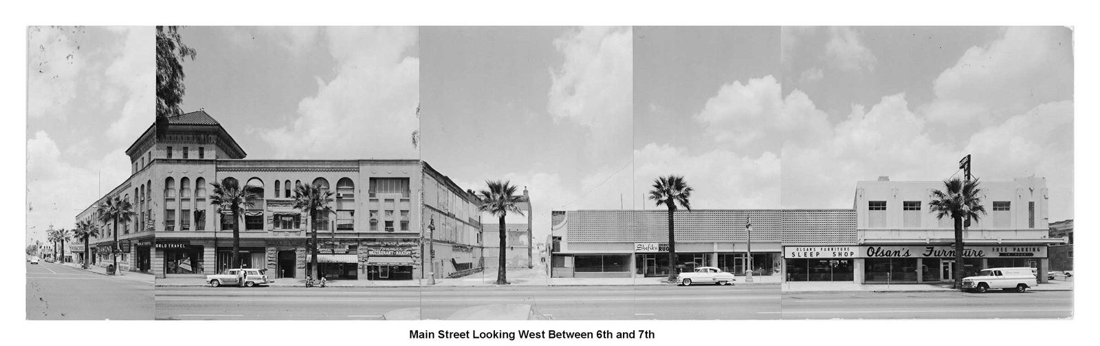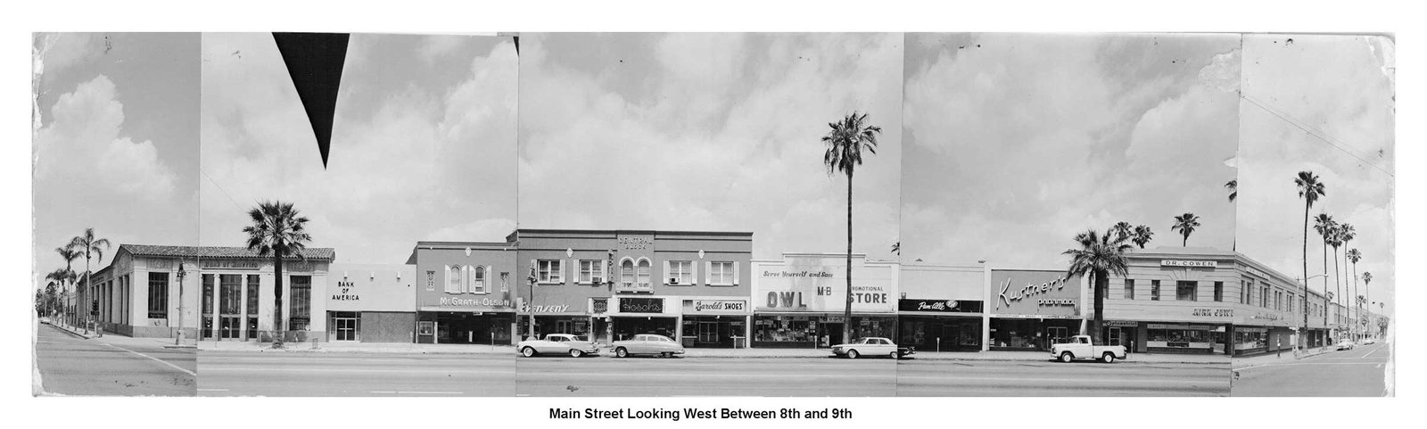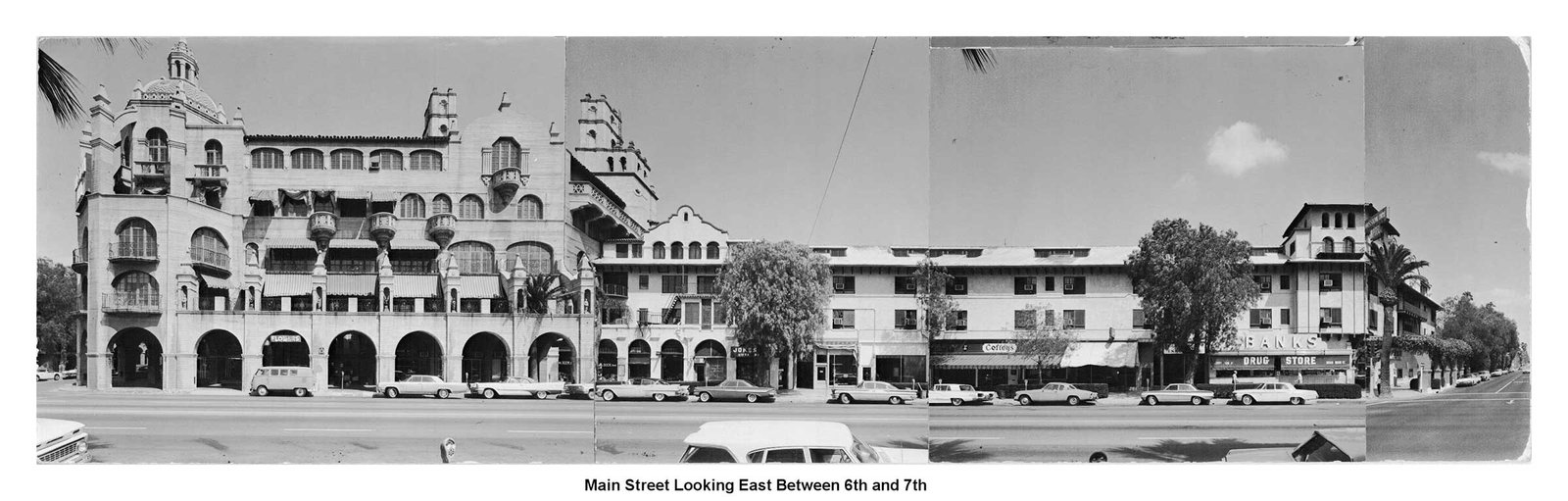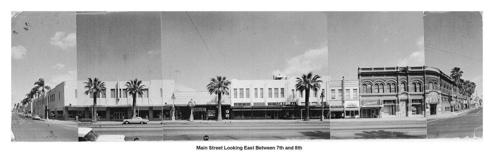 Image panels created in 1963 by architectural firm Ruhnau, Evans & Steinmann documenting the four city blocks (6th to 10th streets) during planning for Riverside’s Main Street pedestrian mall prior to its completion in November 1966 (Courtesy Ruhnau Clarke Architects and City of Riverside)