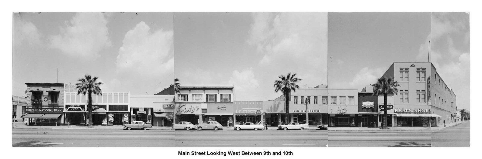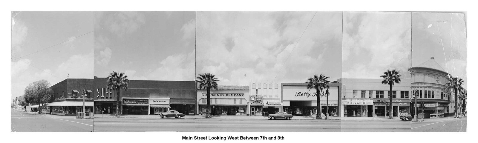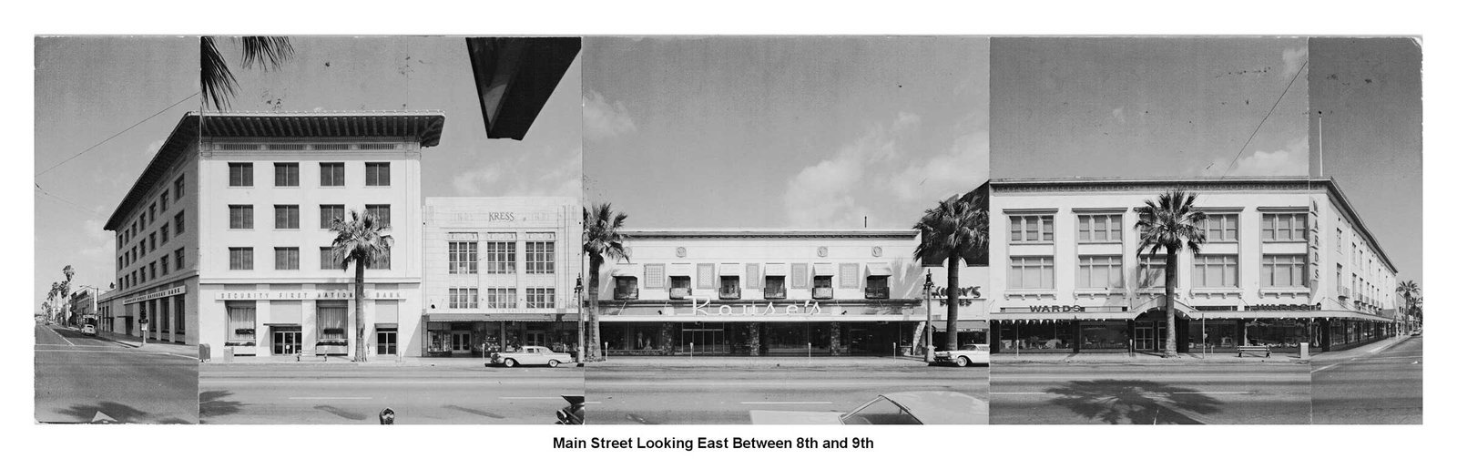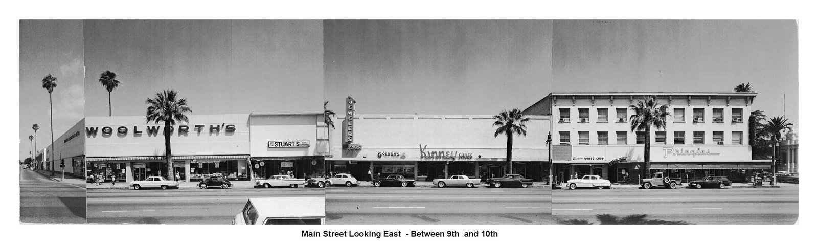 Image panels created in 1963 by architectural firm Ruhnau, Evans & Steinmann documenting the four city blocks (6th to 10th streets) during planning for Riverside’s Main Street pedestrian mall prior to its completion in November 1966 (Courtesy Ruhnau Clarke Architects and City of Riverside)