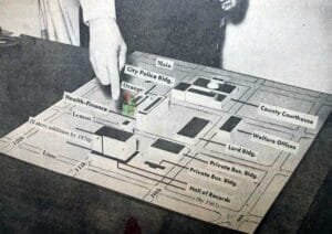 Yet, a funny thing happened during the time between the planning for the pedestal in the mid-1960s and the eventual addition of the office tower in the mid-1970s: the County realized an even greater need for office space would be necessitated by 1980. Thus, what originally was to be a building consisting of 10 above-ground floors (plus basement), ended up as 13 above-ground floors (plus basement). (Note: Though officially with 13 above-ground floors — plus basement — the number of stories for the building has often been erroneously reported as 14 stories on account the building’s elevators and directories show a floor 12 and a floor 14 — omitting any reference to a floor 13.)